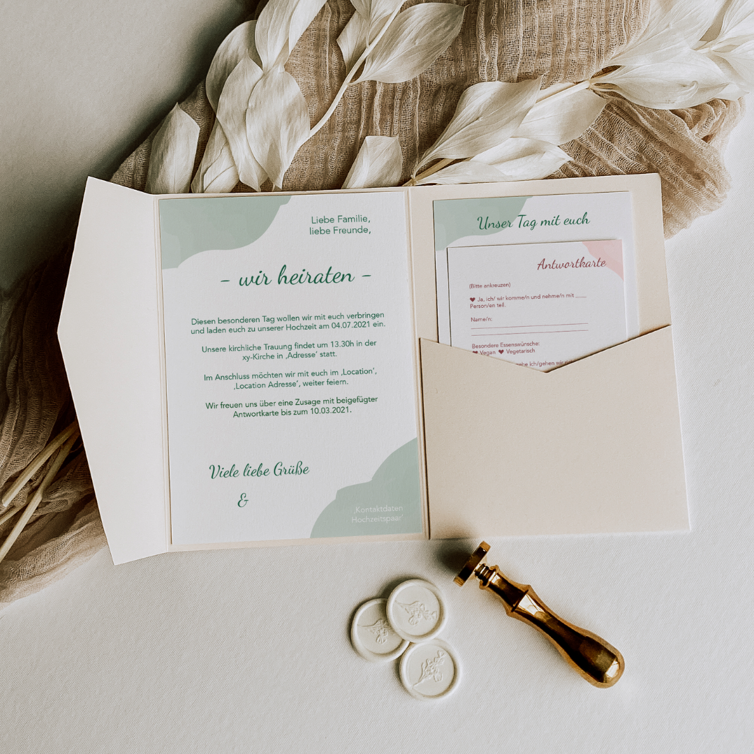 Das einheitliche Design gibt Deiner Hochzeit das besondere Etwas. Es strahlt Einzigartigkeit aus und spiegelt Deinen Stil in jedem Print Produkt wieder